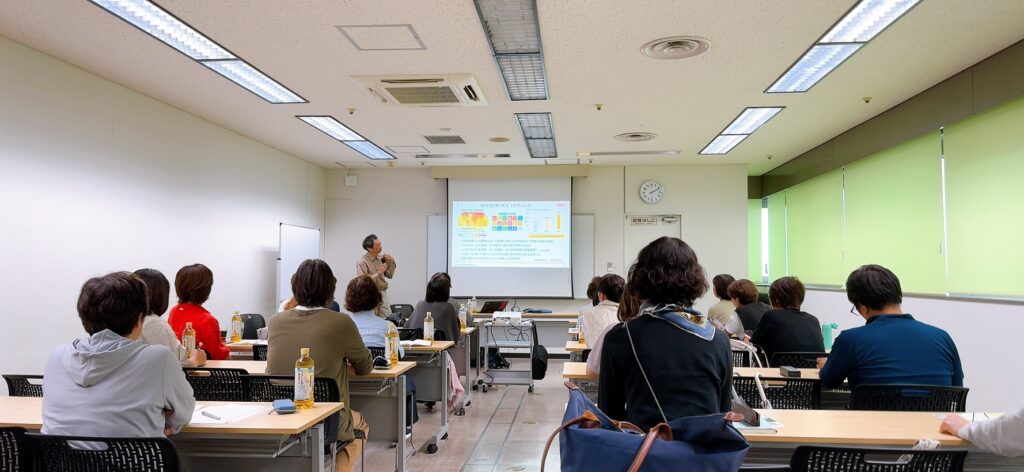 高木さんはまず、高温による植物の酸素不足について話されました。ナノバブルのように水中に酸素を取り込む工夫が有効であること、また、地温を下げるために水はけのよい土づくりを行うことが大切だと説明されていました。マグネシウムなどの葉面散布も有効で、植物の健康維持に役立つとのことでした。